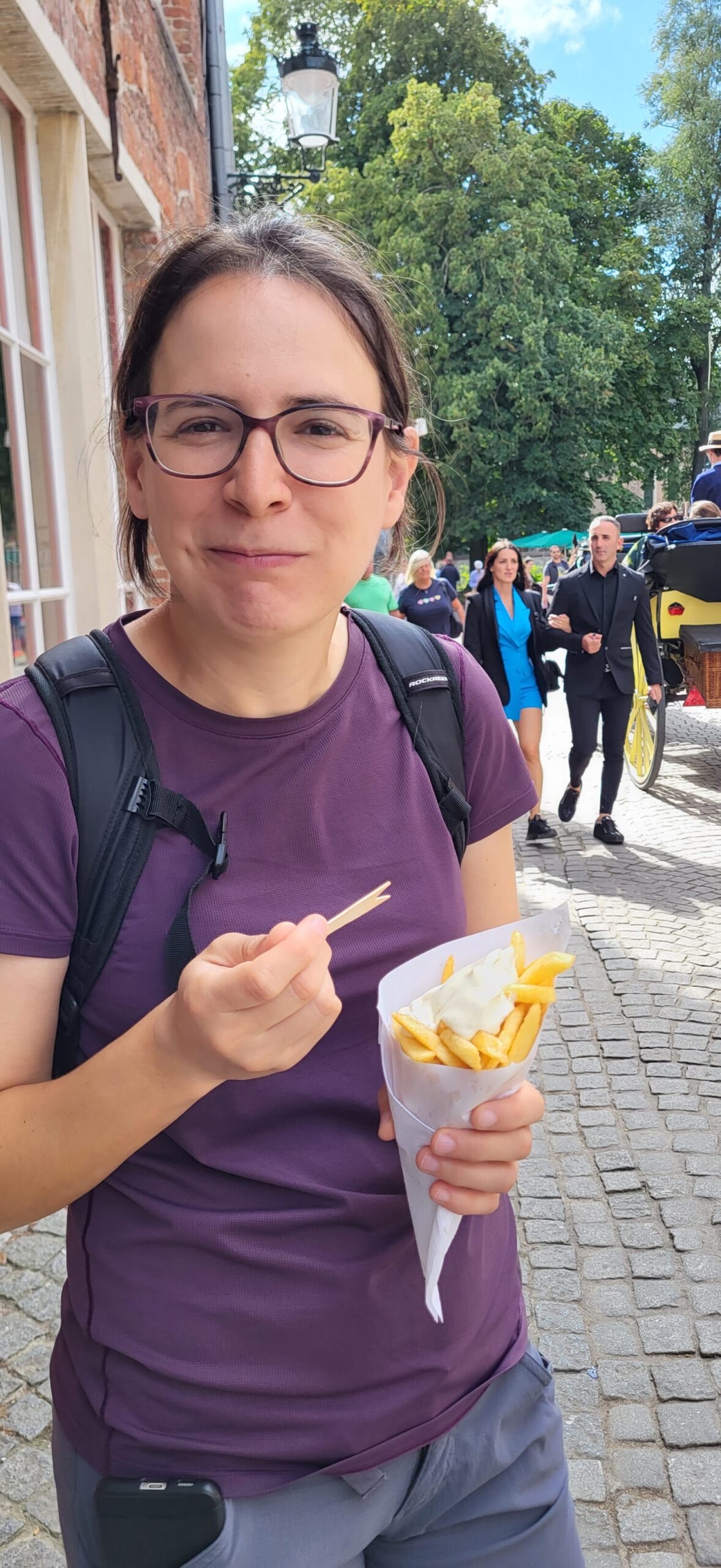 J’adore Bruges! Jalouse de voir que tu mangeait des côtes levées, Marc-Antoine! Et des bonne frites, Sophie! Les photos de la ville, des paysages et des chemins superbement plats, sont splendides! Quel magnifique trajet!