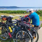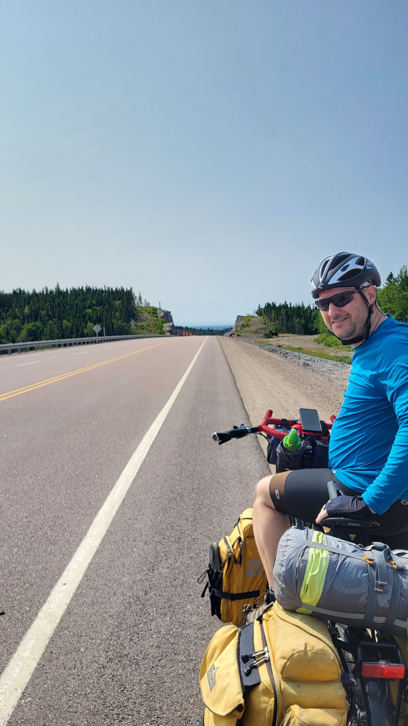Une autre journée tranquille en perspective aujourd’hui : redescendre à Baie-Comeau par la 389. Une petite journée de 25 km, où on commence par monter sur la première moitié du trajet, pour ensuite redescendre. J’ai beaucoup apprécié la qualité du dynamitage effectué pour niveler de nombreuses montées. Dès la rentrée en ville, on croise la microbrasserie St-Pancrace et on s’y arrête un bon moment, vu le choix difficile devant nous pour ne prendre qu’une seule cannette chacun… On continue ensuite de descendre vers notre hôtel pour la nuit, soit le Grand Hôtel, pour y laisser nos sacs avant de poursuivre vers le parc des Pionniers pour prendre le lunch, profiter des vues de la baie et de notre bière toute fraiche. On pédale ensuite tranquillement jusqu’au port et on revient pour une visite guidée de l’église Sainte-Amélie pour admirer tous les vitraux et fresques. Petite pause-café ensuite au Manoir du café où les biscuits au chocolat et romarins nous ont été chaudement recommandés. On profite également de la piétonnisation de la place LaSalle pour magasiner et prendre une autre petite bière à la microbrasserie située juste de l’autre côté de notre hôtel… et on finit le tout au restaurant avec vue sur la baie. Considérant nos journées habituelles, des vraies vacances quoi!