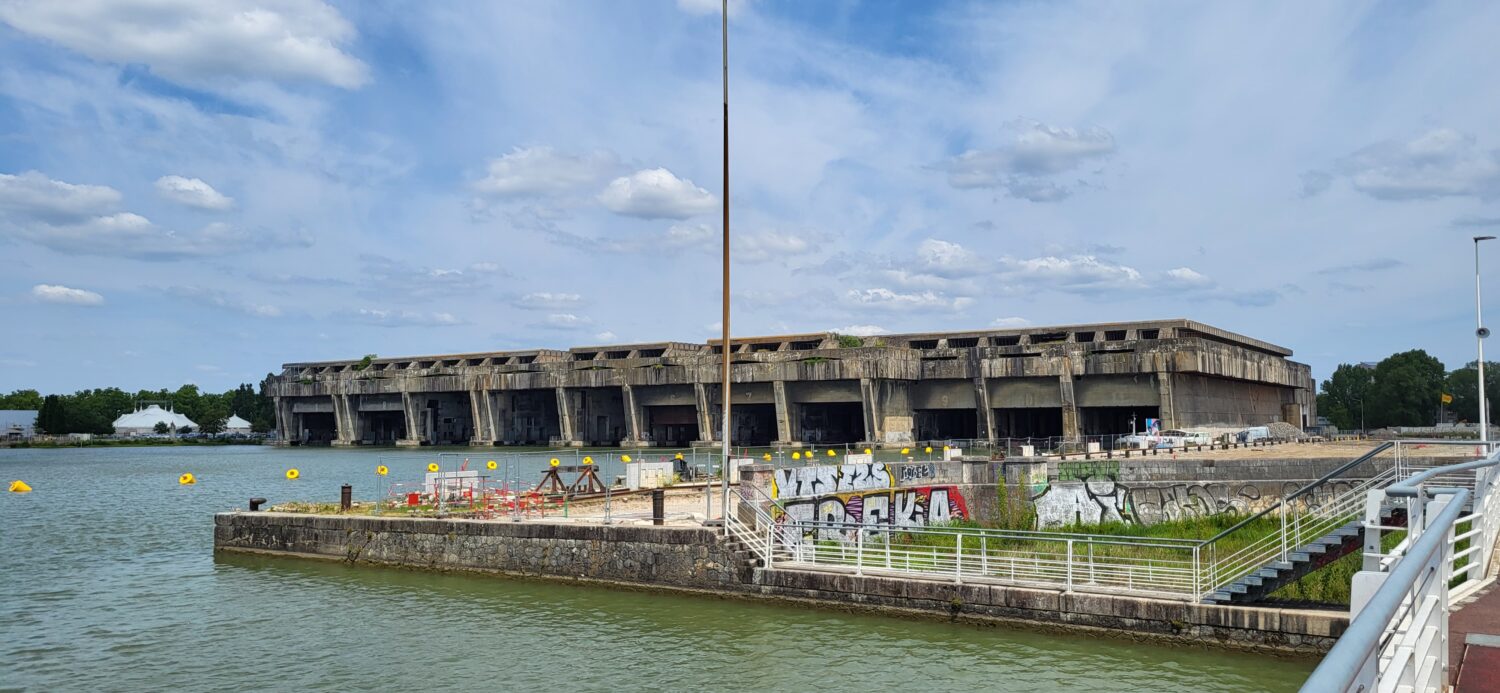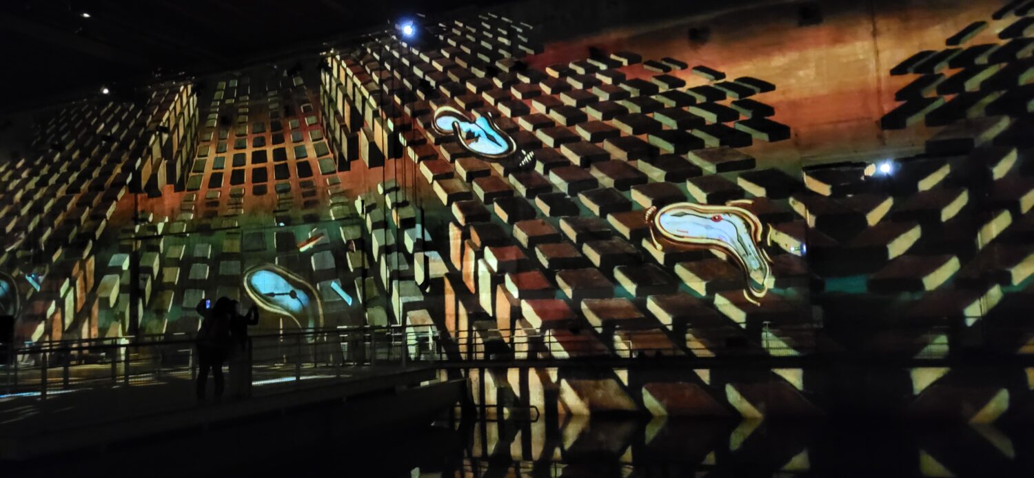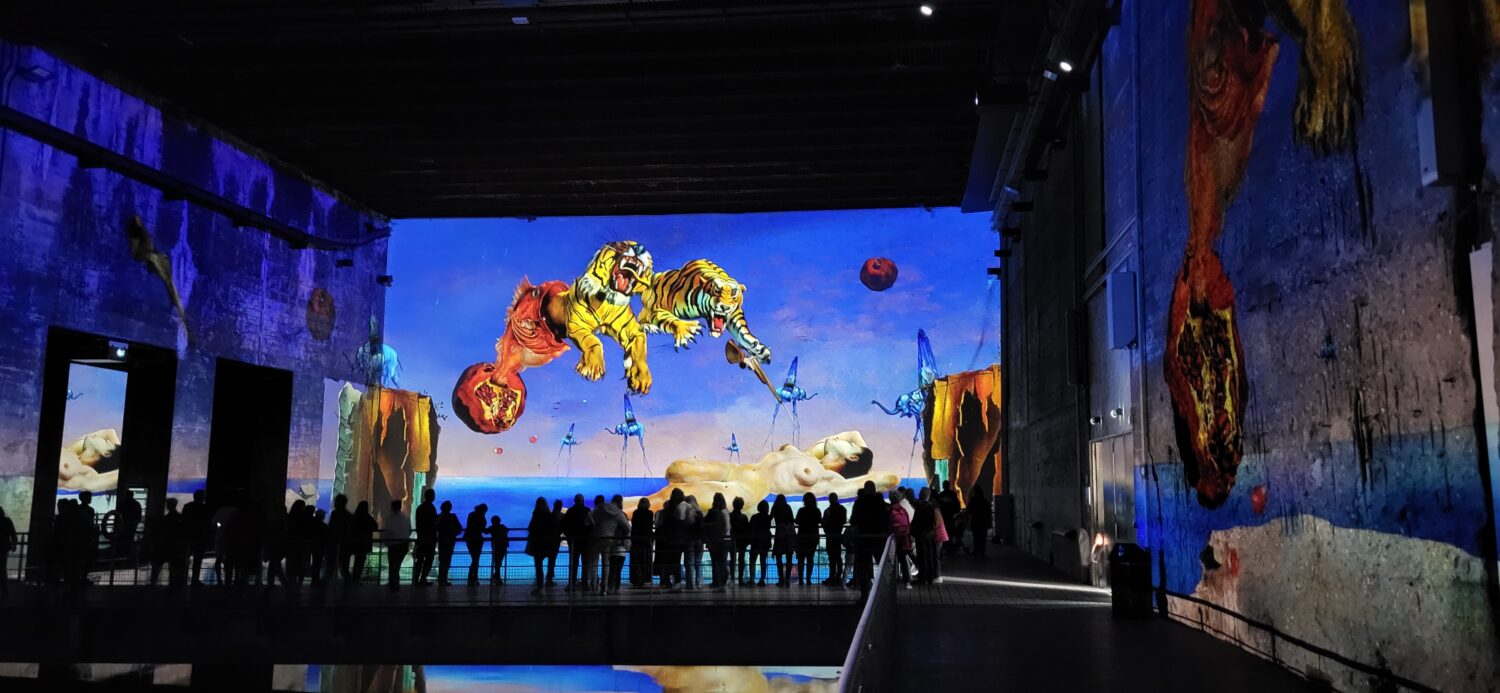 Le bassin des lumières de Bordeaux est situé dans l’ancienne base sous-marine nazie. L’espace intérieur est maintenant utilisé pour des expositions multimédias et celle actuelle est de Dali et Gaudi. C’est très immersif et impressionnant. On serait resté plus longtemps, mais on était limité dans le temps pour aller faire le tour d’autobus.