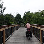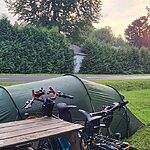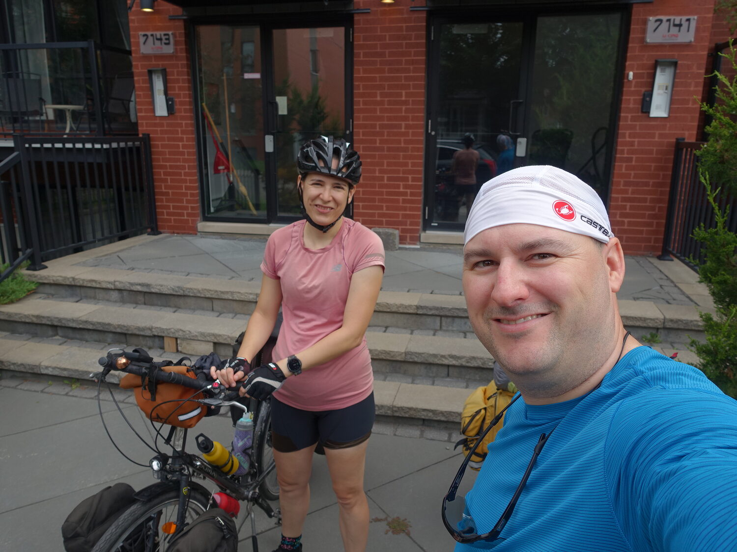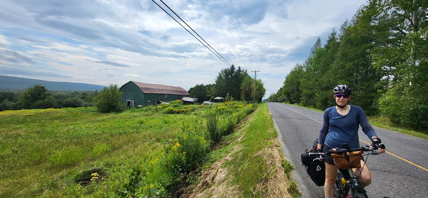 Notre première journée commence par du ménage pour ne pas revenir dans un bordel avant de finaliser nos bagages. Côté vélo, on débute avec un 75 km et, ayant fait peu de longue distance cette année, c’est intrépide. En sortant de Montréal, on suit la véloroute 1 qui nous fait passer par Chambly, avant de s’engager sur la route des champs. Le chemin nous est familier et nous l’apprécions plus quand il n’y a pas de canicule. On arrive à notre destination au bon moment, car une pluie s’abat sur le camping quelques minutes plus tard et la salle communautaire nous sert de refuge en attendant que ça passe. De plus, cette soirée-là, on profitera d’un spectacle de musique où la danse en ligne semble à l’honneur.