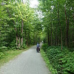 Le lendemain, Sophie apprend une très mauvaise nouvelle et nous ne savions pas si nous continuerions notre voyage. C’est aussi pourquoi nos billets habituels (au jour le jour) ont été retardés, le cœur n’y était pas. Comme notre prochain arrêt (Mont-Orford) est assez proche pour revenir si nécessaire, nous décidons de continuer, mais la journée reste difficile émotionnellement. Quelques souvenirs font pourtant surface telle la montagnarde (parcours de l’enfer durant la canicule), mais de la p’tite bière avec notre expérience. Arrivés au parc, nous faisons la rencontre de Tom le parleur et sa mère Lily. Cyclotouristes, ils ont fait une belle boucle dans la région et seront bientôt sur le chemin du retour. Nous en profitons pour faire plus ample connaissance et partageons notre table durant les repas, en plus de profiter d’un bon feu et de guimauves en soirée. Bonne chance pour la suite, Lily et Tom!