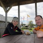 On se lève tôt et il fait probablement 8 degrés, ce qui ralentit un peu nos ardeurs pour un départ rapide. On passe tout d’abord à travers la ville de Miramichi, où on croise notre 4ième pancartes mystérieuse. On longe ensuite la rivière, jusqu’à l’océan, encore. Avec le vent dans le dos, ça roule très vite. On fait une pause à Neguac au centre d’information et lieu historique d’Otho Robichaud, où on reçoit un cours d’histoire rapide sur l’Acadie. Ensuite, on a avalé les derniers 40 km jusqu’à Tracadie-Sheila. On s’installe dans le camping, où on a perdu tout le standing qu’on peut avoir dans les yeux d’une enfant de 7 ans quand elle nous demande pourquoi on ne fait pas la vaisselle dans notre roulotte… Heureusement que j’ai un chocolat chaud pour me remonter le moral.