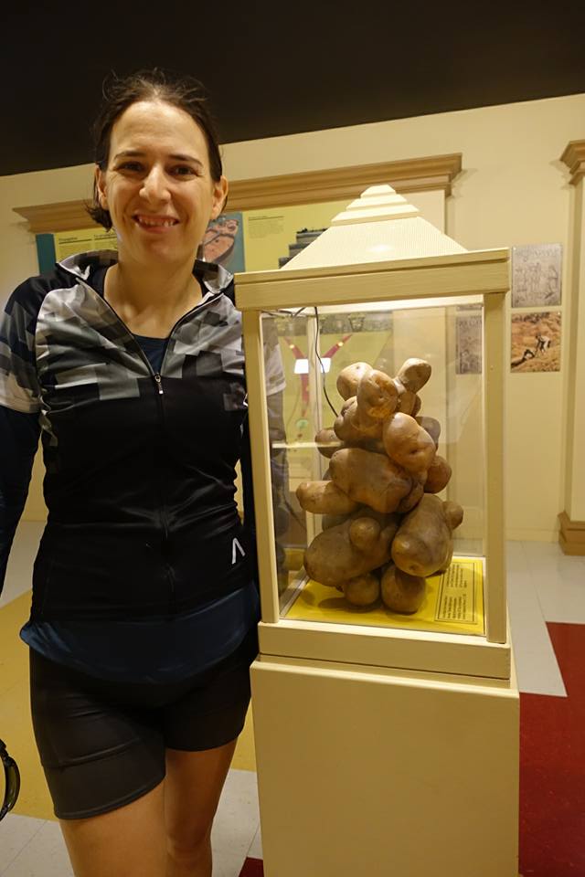 La journée commence à 3:30 quand des rafales à 50 km/heure nous réveillent en frappant les parois de la tente sur le côté. La tente tient le coût mais on dort à peine une heure de plus jusqu’au matin. On lève très tôt comme tous nos compatriotes dormant dans des tentes et on part heureusement avec le vent dans le dos. On se laisse plutôt porter par le vent et la pluie qui nous attrape en matinée. Petite pause à un centre d’information avec un café gratuit et on repart direction O’Reilly et le musée national de la patate! On découvre plein de choses palpitantes y compris les multiples maladies de la patate avec support visuel… très réaliste. On se dirige ensuite vers Cedar Dunes et notre premier phare à visiter à l’intérieur. On prend bien soin de planter la tente dans le sens du vent cette fois-ci.