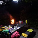 Je ne sais pas pourquoi on s’acharne à appeler ça une journée de repos quand on ne se repose jamais. On part pour aller s’installer au parc Forillon et profiter de celui-ci. Après avoir traversé le parc par le chemin avec le moins de dénivelé, on arrive enfin après 2 h de vélo et, sitôt installé, on repart pour une randonnée au Mont-Saint-Alban de 2 h 30. La vue est époustouflante, surtout en haut de la tour d’observation. Nous sommes supposés aller au phare Bout du monde, mais après réflexion, nous décidons finalement de rentrer au camp pour un peu de repos. Après un bon souper, nous profitons du bois laisser par d’autres campeurs pour s’allumer un feu. Ahhh ! Content que la journée soit finie !