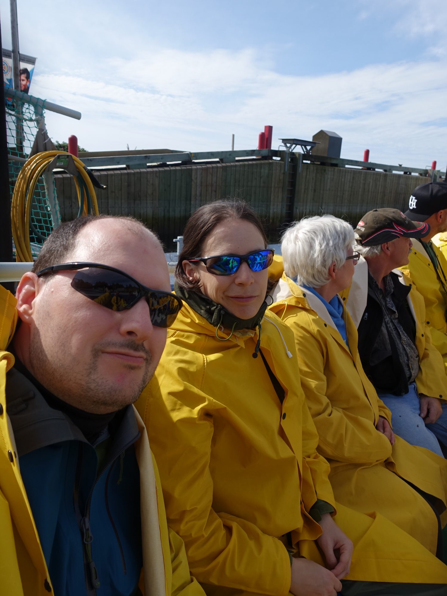 La journée commence durant la nuit quand Sophie rentre à pleine vitesse dans un poteau qu’elle n’avait pas vu en allant aux toilettes (heureusement sans témoin de la scène). Pendant notre préparation de notre déjeuner, notre brûleur toussote et arrête de fonctionner. On prend donc notre déjeuner de fortune sans café avant de se diriger pour notre excursion pour observer les baleines, en croisant un ours noir en chemin. Après avoir pris une gravol contre le mal de mer, Sophie s’endort après une heure d’observation seulement. Une petite sieste en mer dispendieuse quand même! Au moins elle a pu voir plusieurs baleines (rorqual commun, rorqual à bosse, et rorqual bleu !) avant…. On prend ensuite la route pour les 35 km qui reste vers Gaspé. En arrivant au B&b, en rangeant nos vélos dans le garage, Sophie se rentre le tibia dans un morceau en tôle et se faite une bonne coupure…. Après des steri-strips et un peu de médication Gaspésie en format pinte, la journée est enfin finie. Je profite du temps qui reste pour nettoyer et réparer le brûleur afin de se débarrasser de la malédiction.
