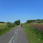 Départ tardif après un bon petit déjeuner avec notre hôte René, nous suivons la piste du Horst de Kénogami qui possède des vues magnifiques du lac, mais plusieurs montées. Nous nous habituons tranquillement à notre charge, surtout Sophie qui est la première à prendre les sacoches avant. Nous transportons environ 50 livres séparés en trois pairs de sacoches. Arrivés à Métabetchouan, nous contemplons enfin le Lac-Saint-Jean et ses plages et il ne reste plus que 12km avant d’arriver à notre camping à Saint-Gédéon. Après avoir monté notre camp, nous étions trop fatigués pour préparer un souper et, par hasard, décidons d’essayer un resto à tacos. Délicieux! Ils étaient aussi bons qu’au Mexique.