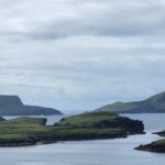 L’Eurovélo 1 passe à l’intérieur des terres dans le Ring of Kerry entre les chaînes de montagnes. Nous faisons donc l’ascension de trois cols, Moll’s Gap, Ballaghbeama Gap et Ballaghisheen Pass pour un total de 1000 mètres. Ça fait longtemps que nous n’avions pas fait cela en une journée en plus parsemée d’averses. Bien que les pentes commencent tranquillement, les derniers kilomètres sont assez ardus, mais le paysage en vaut la peine et les descentes vertigineuses. Après tant d’effort, nos deux jours de pause sont bien mérités à Cahersiveen et la vue de notre emplacement est superbe. De plus, la plupart des campings ont en Irlande un « camper’s kitchen », un emplacement couvert qui peut comprendre une bouilloire jusqu’à une cuisine tout équipée. Celles-ci sont un refuge de la pluie et occasionnent beaucoup d’échange entre campeurs (donc Sophie l’évite des fois (note de Sophie : 99% du temps). Après avoir passé une journée à ne rien faire, nous partons à la découverte de Valentia Island sans bagages pour gravir Bray Head à pied.