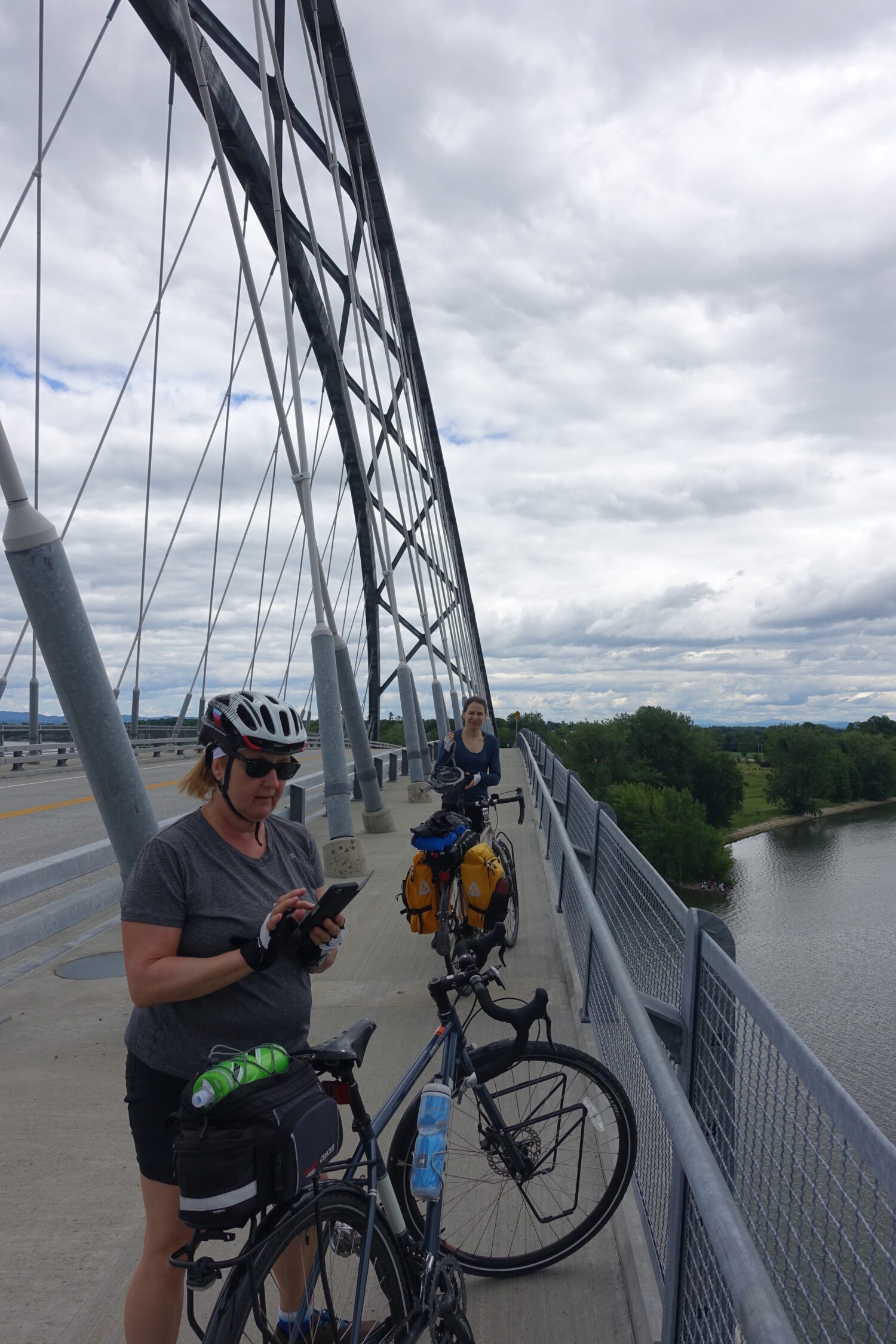 En 2017, un concours de circonstances nous permet de planifier notre randonnée annuelle mère/fils+belle fille en s’inspirant de notre premier voyage à vélo autour du Lac Champlain. Réalisé quatre ans plus tôt, les souvenirs de celui-ci sont toujours aussi vifs et nous espérons recapturer des moments similaires. Maintenant plus expérimenté et à l’aise, notre parcours nous amènera beaucoup plus loin que Port Kent pour emprunter le Champlain Bridge avant de revenir vers le nord. Ma mère étant partie aux États-Unis une semaine plus tôt nous rejoint à Plattsburgh bien que Sophie et moi partons de Montréal. Ce sera aussi le premier voyage avec son beau nouveau vélo, un kona sutra, et l’organisation de ces bagages sans mes conseils. Je lui refile deux choix de sacs à vélo lui précisant qu’elle choisira celui qu’elle préfère et me disant qu’elle doit bien savoir quoi apporter après trois voyages.